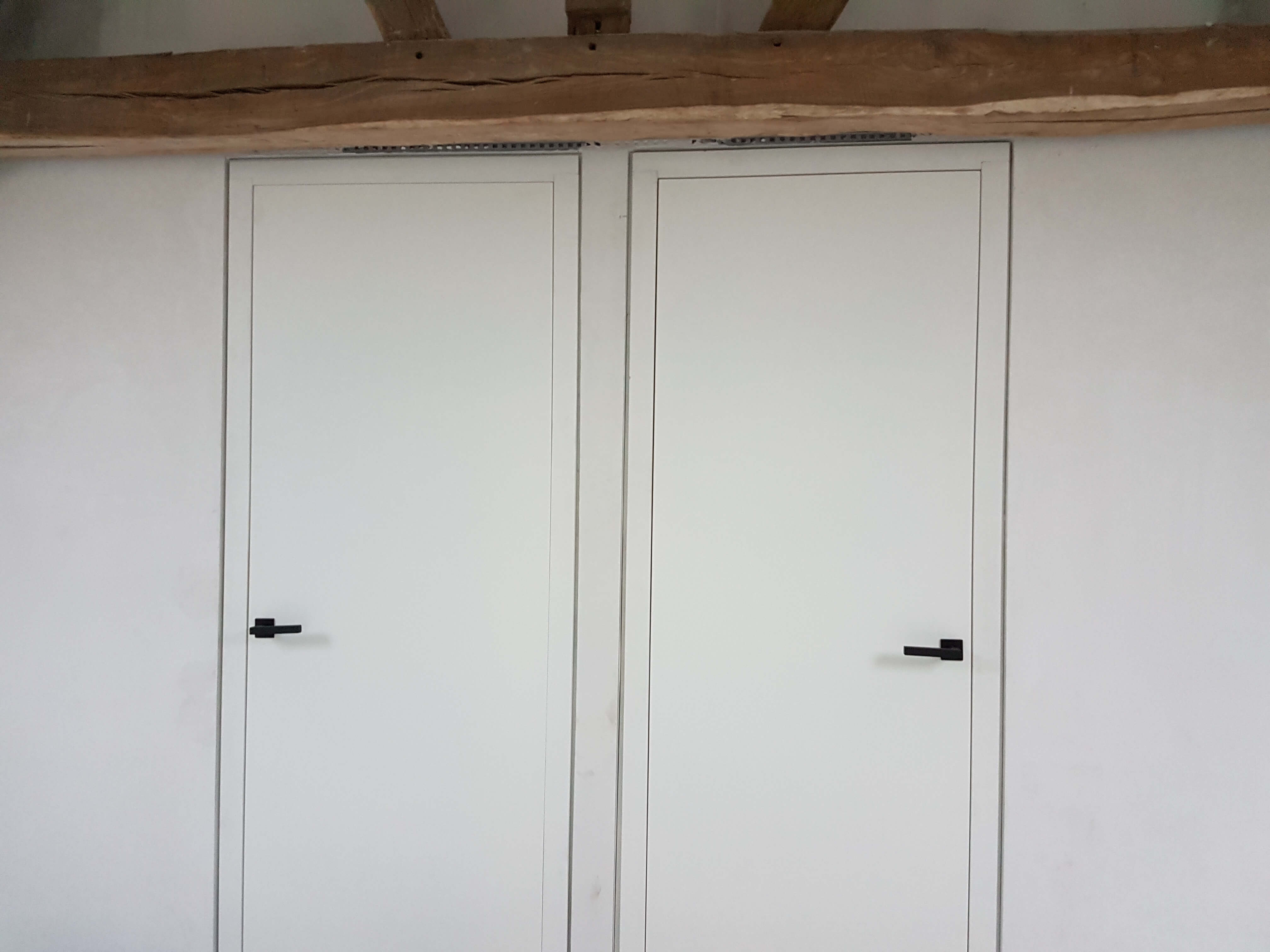 Clement bv is erg trots op deze creatie. Het is een volledig houten deurgeheel op basis van het Xinnix principe. Thermisch en akoestisch een topper met mooie accentvoegen. Deze deuren worden in het vlak van de muur geplaatst en kunnen zowel in de opening als uit de opening draaien.