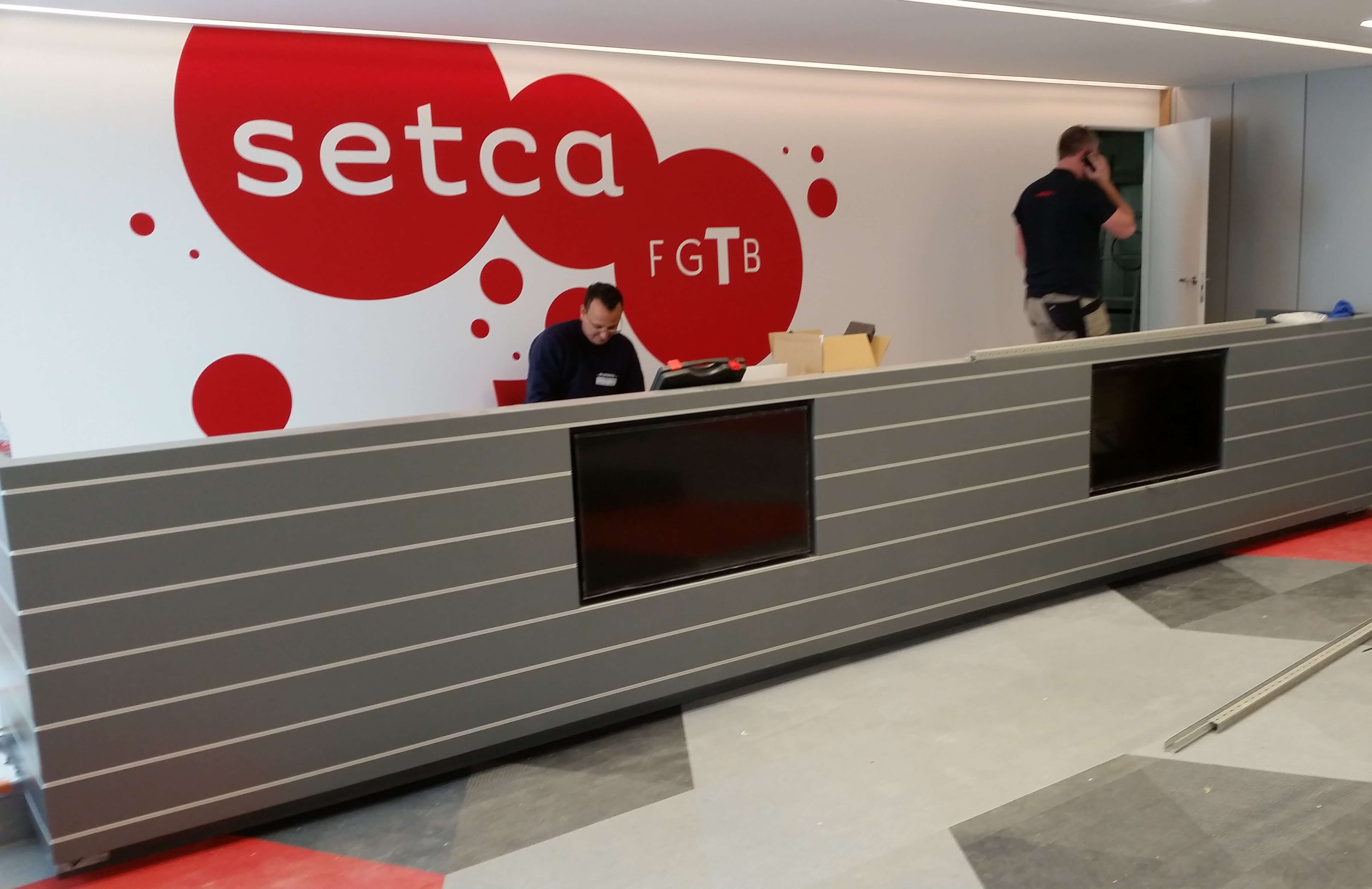 Accueil et bureau de vente Projet FGTB Liège, SETCA De belles lignes de stratifiés et d'acier inoxydable avec de nombreuses intégrations techniques.