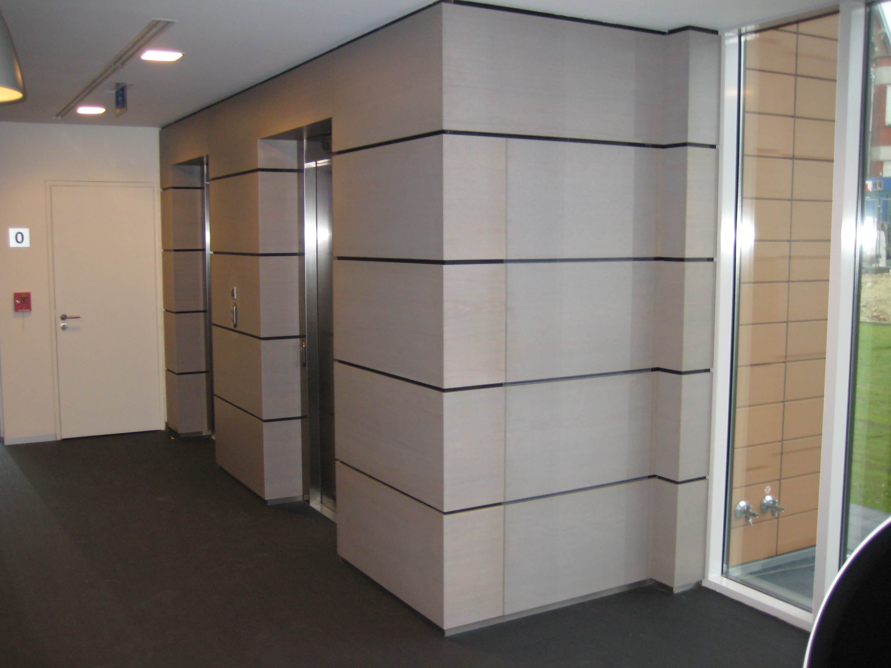 Aménagement total du hall d'entrée en combinaison de placage de chêne vieilli, d'acier inoxydable, de bulles, ...