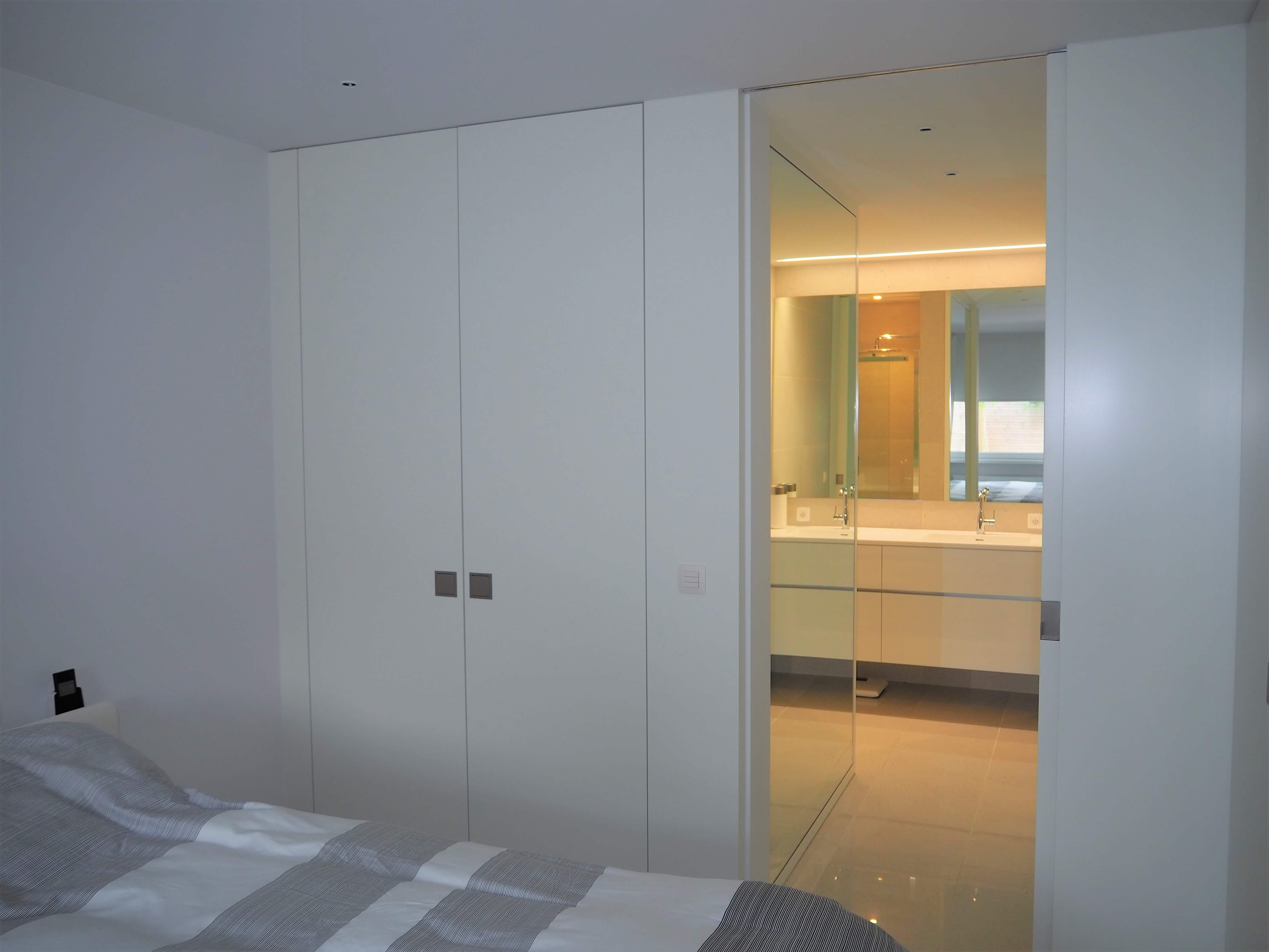 Chambre à coucher et dressing Projet Zaventem Utilisation maximale et pratique d'une armoire: bar à vêtements et monte-charge pour les vêtements.