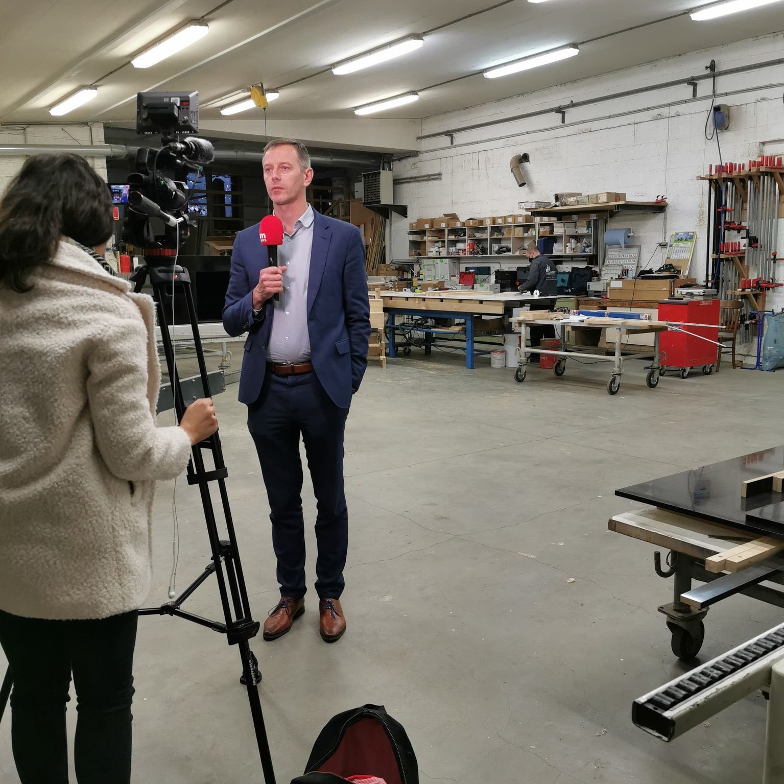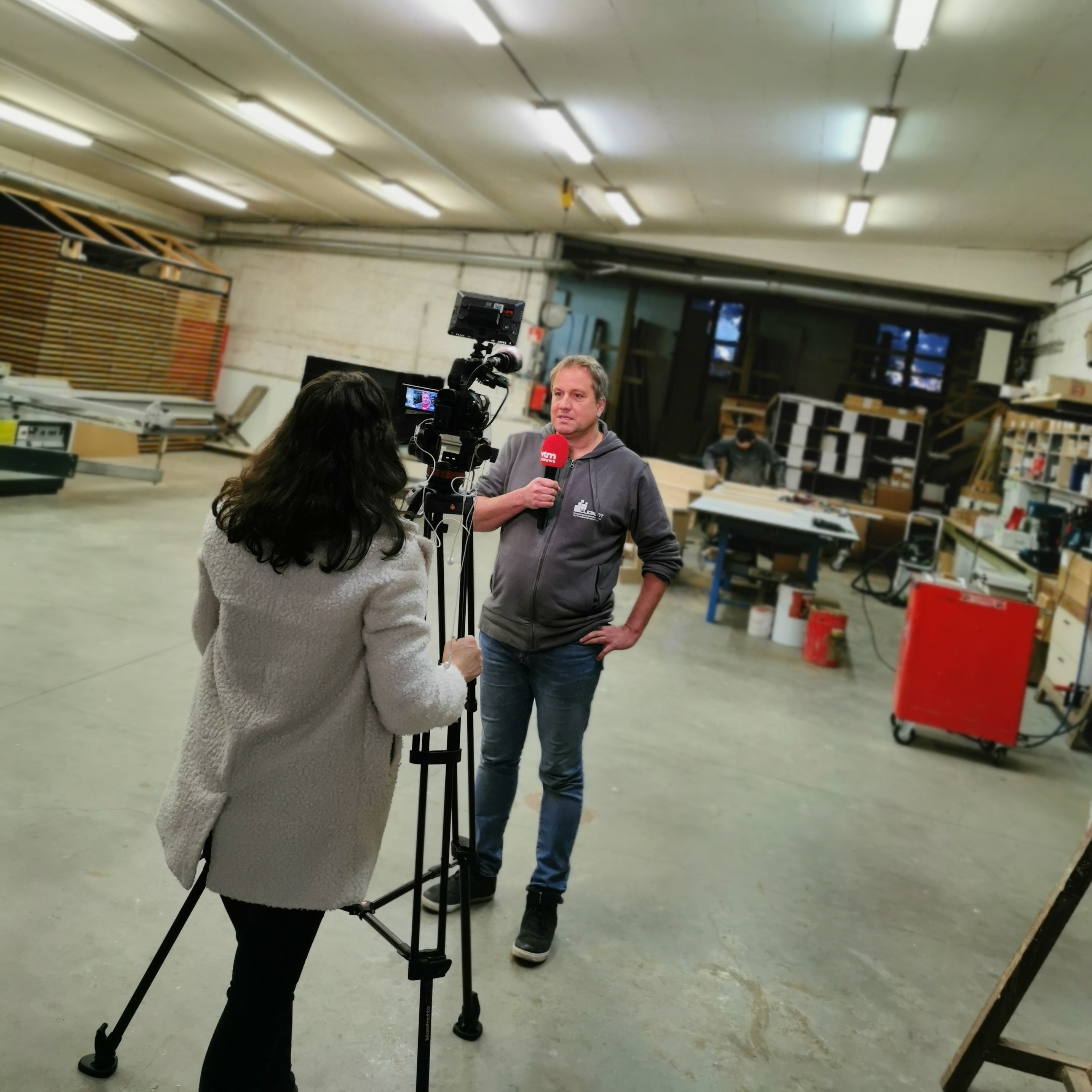 Op 18 december kwam VTM bij Clement BV op bezoek voor een reportage over ‘flexibele tewerkstellingen’. Ook gedelegeerd bestuurder van de Bouwunie, Jean Pierre Wayetens, was daarbij aanwezig. Pol Clement is zelf nationaal voorzitter schrijnwerkers en interieurbouwers binnen de Bouwunie en mocht voor de camera uitleggen waarom Clement BV een goed voorbeeld is van een flexibele werkgever.